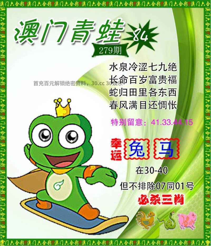 279期:水泉冷涩七九绝,长命百岁富贵福,蛇归田里各东西,春风满目还惆怅 解释:春风满目还惆怅,解春肖兔虎龙 生肖:兔虎龙羊狗鸡 |